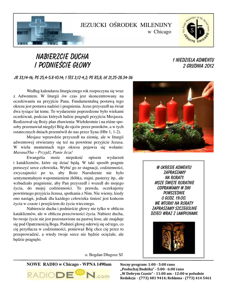 Niedziela 2 grudnia 2012 - Polscy Jezuici w Chicago