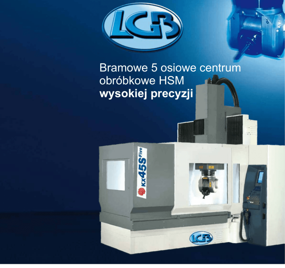 Bramowe 5 osiowe centrum obróbkowe HSM wysokiej precyzji Uniwersalne, bramowe, 5 osiowe centrum obróbkowe 45s 45 s Five KX Five COMPACT KX PRZESUWY Oś X - przesuw wzdłużny Oś Y - przesuw poprzeczny Oś Z - przesuw pionowy Oś A Oś C 1500 mm 1500 mm 800 mm + / -110° + / -200° Dostępne odległości Prześwit między kolumnami Wrzeciono w położeniu pionowym Wrzeciono w położeniu poziomym 1660 mm 855 / 55 mm 1110 / 310 mm Stół Powierzchnia stołu (długość x szerokość) mm Dopuszczalne obciążenie stołu Liczba rowków teowych Odległość między rowkami teowymi 1480 x 1440 5000 kg 14 - M14 100 mm STANDARDOWE WRZECIONO Stożek wrzeciona Siła mocowania narzędzia Prędkość obrotowa wrzeciona Charakterystyczna prędkość obrotowa Moc napędu wrzeciona Maks. moment obrotowy na wrzecionie HSK 63 A 12000N 20000 obr./min. 7000 obr./min. 20/26 kW 33/43 Nm POSUWY LINIOWE Przesuwy szybkie Maksymalne przyspieszenie Maks. obciażenie XY = 40000 - Z = 30000 mm/min. 5 m/s 2 Y Z = 8200N X = 21000N POSUWY KĄTOWE 60 obr./min. Maks. prędkość ruchu obrotowego DOKŁADNOŚCI POZYCJONOWANIA Osie liniowe - Norma VDI Osie obrotowe 7 µm 10 sekund kątowych MAGAZYN NARZĘDZI 24 (opcja 40) 5 kg / 80 mm / 250 mm 8 sekund Liczba oprawek narzędziowych Maks. wymiary narzędzi (masa,średnica,długość) Czas wymiany narzędzia WYMIARY GABARYTOWE I ZASILANIE Długość x szerokość x wysokość [mm ] Masa Sprężone powietrze: ciśnienie - wydatek Moc zainstalowana 5000 x 3500 x 4150 15000 kg 6 bar - 6m 3/h 78 kVA LGB Parc d’activité - 45, allée du Mens BP 36062 - 69604 Villeurbanne cedex Tél : +33 (0)4 72 04 69 70 Fax : +33 (0)4 72 04 64 45 www.lgbmachines.com 45s Five KX COMPACT Centrum frezarskie HSM o wysokiej dokładności i wydajności znajdujące zastosowanie w branżach: - narzędziowej, budowy form wtryskowych, odlewniczych i do przetwórstwa gumy, - obróbki kompozytów, - budowy prototypów i modeli; Do produkcji małoi średnioseryjnej części dla przemysłu lotniczego, zbrojeniowego, motoryzacyjnego, kolejnictwa oraz energetycznego. Centra te dostępne są w wersji 3 i 5 osiowej do obróbki szybkościowej (frezowania - szlifowania). The information in this catalogue is provided as an indication only. LGB reserves the right to modify the models described in this catalogue for technical or commercial reasons. The descriptions do not necessarily refer to the standard version of the product. Printed in France - 2009. DANE TECHNICZNE 7 dobrych powodów aby wybrać 45s KX Five COMPACT • Bardzo dobry stosunek ceny do ogółu właściwości ! E-mail: [email protected] Internet: www.meftech.com.pl