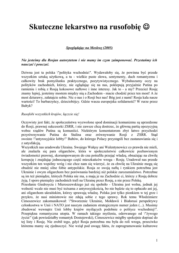 Skuteczne lekarstwo na rusofobię