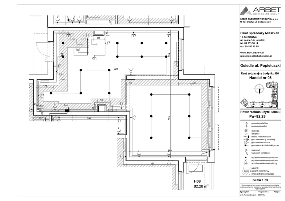 236 214 2 2 2 ARBET INVESTMENT GROUP Sp. z o.o. 10-424 Olsztyn ul. Budowlana 3 37 2 452 Dział Sprzedaży Mieszkań 33 2 2 2 81 2 10-173 Olsztyn ul. Leśna 14 / Lokal 6H tel. 89 535 38 14 fax. 89 535 42 85 2 www.arbet.olsztyn.pl [email protected] 359 359 2 2 Osiedle ul. Popiełuszki 2 924 Rzut sytuacyjny budynku B6 Handel nr 08 229 62 2 121 2 63 2 TU-1 51 25 25 Powierzchnia użytk. lokalu 2 553 2 TU-2 2 2 2 144 2 Pu=82,28 573 107 gniazdo podwójne gniazdo szczelne U domofon dzwonek tablica mieszkaniowa gniazdo telewizji kablowej gniazdo telefoniczne gniazdo do kuchni elektrycznej 2 400 335 TM-1 RTV 166 137 29 wyłącznik wyłącznik schodowy 589 2 2 2 398 385 wpust oświetleniowy sufitowy wpust oświetleniowy sufitowy wpust oświetleniowy ścienny 2 grzejnik grzejnik łazienkowy strefa ochronna instalacji 99 31 385 227 232 2 83 2 203 2 111 TT H08 82,28 m2 Skala 1:50 Dokumentacja sporządzona na podstawie pomiarów wykonanych przez pracownię geodezyjno-kartograficzną "GEOMETR". Sporządził: Nr uprawnień: arch.Tomasz Gryglicki 50/01/OL Podpis:
