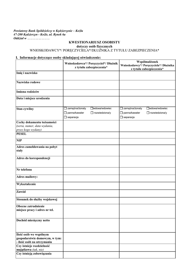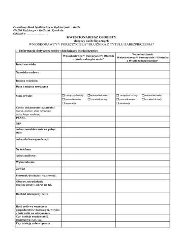 Kwestionariusz osobisty - Powiatowy Bank Spółdzielczy w