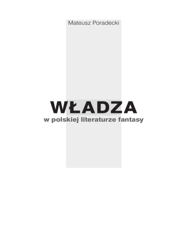 Mateusz Poradecki Władza w polskiej literaturze fantasy Mateusz Poradecki Władza w polskiej literaturze fantasy Łódź 2009 Recenzent Prof. dr hab. Jerzy Smulski Projekt okładki Mirosław Owczarek Projekt typograficzny Barbara Kuźnik © Copyright by Mateusz Poradecki, Łódź 2009 ISBN 978-83-929572-3-2 Skład i łamanie Barbara Kuźnik Druk Sowa Wydawca Officyna 93-114 Łódź, ul Przędzalniana 99 www.wydawnictwo-officyna.pl • [email protected] Spis treści Wstęp . . . . . . . . . . . . . . . . . . . . . . . . . . . . . . . . . . . . . . . . . . . . . . . . . 11 Rozdział I Ustroje i piony władzy . . . . . . . . . . . . . . . . . . . . . . . . . . . . . . . . . . 23 Wstęp . . . . . . . . . . . . . . . . . . . . . . . . . . . . . . . . . . . . . . . . . . . . . Trzy piony władzy .. . . . . . . . . . . . . . . . . . . . . . . . . . . . . . . . . . . Saga o Wiedźminie Andrzeja Sapkowskiego 23 24 .. . . . . . . . . . . . . 26 Monarchia i dziedziczenie . . . . . . . . . . . . . . . . . . . . . . . . . . . . . 26 Religia . . . . . . . . . . . . . . . . . . . . . . . . . . . . . . . . . . . . . . . . . . 29 Magia .. . . . . . . . . . . . . . . . . . . . . . . . . . . . . . . . . . . . . . . . . . 31 Wojsko . . . . . . . . . . . . . . . . . . . . . . . . . . . . . . . . . . . . . . . . . . 36 Rasy inteligentne . . . . . . . . . . . . . . . . . . . . . . . . . . . . . . . . . . . 39 Elfy . . . . . . . . . . . . . . . . . . . . . . . . . . . . . . . . . . . . . . . . . . . . 39 Krasnoludy . . . . . . . . . . . . . . . . . . . . . . . . . . . . . . . . . . . . . . . 41 Achaja Andrzeja Ziemiańskiego .. . . . . . . . . . . . . . . . . . . . . . . . 44 Ustroje i wojsko . . . . . . . . . . . . . . . . . . . . . . . . . . . . . . . . . . . . 44 Religia . . . . . . . . . . . . . . . . . . . . . . . . . . . . . . . . . . . . . . . . . . 50 Saga o zbóju Twardokęsku Anny Brzezińskiej . . . . . . . . . . . . . 54 Bogowie i religia .. . . . . . . . . . . . . . . . . . . . . . . . . . . . . . . . . . . 54 Ustroje . . . . . . . . . . . . . . . . . . . . . . . . . . . . . . . . . . . . . . . . . . 58 Pieśń o Ludziach Ziemi Mirka Saskiego . . . . . . . . . . . . . . . . . . 63 Krew i Kamień Tomasza Kołodziejczaka .. . . . . . . . . . . . . . . . . 69 Cykl o Reynevanie Andrzeja Sapkowskiego .. . . . . . . . . . . . . . Świat Mordimera Madderdina Jacka Piekary .. . . . . . . . . . . . . Pan Lodowego Ogrodu Jarosława Grzędowicza . . . . . . . . . . . 71 75 77 Rozdział II Wizerunek władców i władzy w oczach społeczeństwa . . 89 Opinie negatywne . . . . . . . . . . . . . . . . . . . . . . . . . . . . . . . . . . . Opinie pozytywne .. . . . . . . . . . . . . . . . . . . . . . . . . . . . . . . . . . . 104 Odmienność osobowości władców 94 .. . . . . . . . . . . . . . . . . . . . . 109 Rozdział III Postawy obywateli wobec władzy .. . . . . . . . . . . . . . . . . . . . . . 115 Patriotyzm .. . . . . . . . . . . . . . . . . . . . . . . . . . . . . . . . . . . . . . . . . 116 Postawy aspołeczne Koniunkturalizm Neutralność . . . . . . . . . . . . . . . . . . . . . . . . . . . . . . . . . 125 . . . . . . . . . . . . . . . . . . . . . . . . . . . . . . . . . . . . . 126 .. . . . . . . . . . . . . . . . . . . . . . . . . . . . . . . . . . . . . . . . 128 Rozdział IV Władcy . . . . . . . . . . . . . . . . . . . . . . . . . . . . . . . . . . . . . . . . . . . . . . . . 131 Luksus .. . . . . . . . . . . . . . . . . . . . . . . . . . . . . . . . . . . . . . . . . . . . 133 Wymóg posłuchu Mania wielkości Wychowanie Etykieta . . . . . . . . . . . . . . . . . . . . . . . . . . . . . . . . . . . . 134 .. . . . . . . . . . . . . . . . . . . . . . . . . . . . . . . . . . . . . 138 . . . . . . . . . . . . . . . . . . . . . . . . . . . . . . . . . . . . . . . . 146 . . . . . . . . . . . . . . . . . . . . . . . . . . . . . . . . . . . . . . . . . . . . 149 Sakralizacja wizerunku władcy .. . . . . . . . . . . . . . . . . . . . . . . . . 150 Ceremoniał . . . . . . . . . . . . . . . . . . . . . . . . . . . . . . . . . . . . . . . . . 156 Władza funkcjonalna Obyczaje . . . . . . . . . . . . . . . . . . . . . . . . . . . . . . . . . 160 .. . . . . . . . . . . . . . . . . . . . . . . . . . . . . . . . . . . . . . . . . . 163 Odpowiedzialność . . . . . . . . . . . . . . . . . . . . . . . . . . . . . . . . . . . 170 Rozdział V Gra o władzę . . . . . . . . . . . . . . . . . . . . . . . . . . . . . . . . . . . . . . . . . . 201 Monarchowie, arystokracja Czarodzieje Kapłani Elfy . . . . . . . . . . . . . . . . . . . . . . . . . . . . 202 .. . . . . . . . . . . . . . . . . . . . . . . . . . . . . . . . . . . . . . . . 212 . . . . . . . . . . . . . . . . . . . . . . . . . . . . . . . . . . . . . . . . . . . . 218 . . . . . . . . . . . . . . . . . . . . . . . . . . . . . . . . . . . . . . . . . . . . . . . 227 Mieszczanie . . . . . . . . . . . . . . . . . . . . . . . . . . . . . . . . . . . . . . . . 227 Krew i Kamień Tomasza Kołodziejczaka Patriotyzm . . . . . . . . . . . . . . . . . . 231 .. . . . . . . . . . . . . . . . . . . . . . . . . . . . . . . . . . . . . . . . . 233 Zakończenie . . . . . . . . . . . . . . . . . . . . . . . . . . . . . . . . . . . . . . . . . . . 241 Aneks Wykaz nazw własnych występujących w pracy . . . . . . . . . . . . 247 Bibliografia Bibliografia podmiotowa .. . . . . . . . . . . . . . . . . . . . . . . . . . . . . . 257 Bibliografia przedmiotowa Bibliografia ogólna . . . . . . . . . . . . . . . . . . . . . . . . . . . . . 258 . . . . . . . . . . . . . . . . . . . . . . . . . . . . . . . . . . . 263 Teksty literackie i filmy . . . . . . . . . . . . . . . . . . . . . . . . . . . . . . . . 267