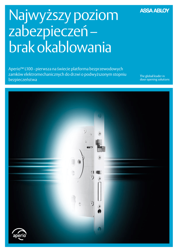 Bezprzewodowy zamek Aperio™ L100 jest najbardziej zaawansowanym i kompletnym rozwiązaniem tego typu dostępnym na rynku. Sprawdzona
