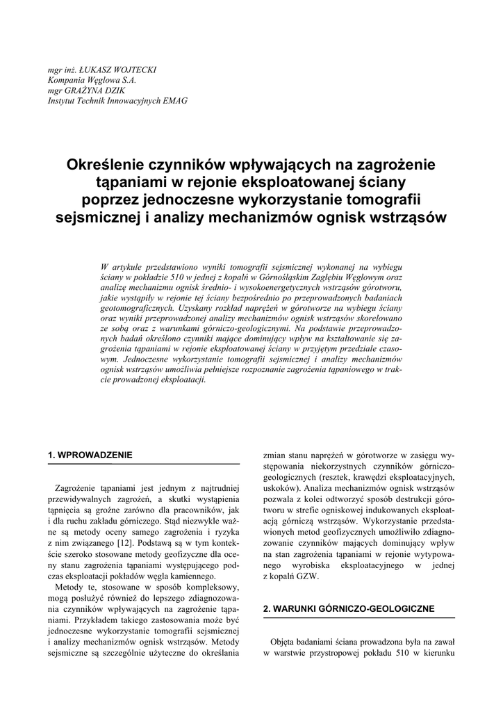 Określenie czynników wpływających na zagrożenie tąpaniami w
