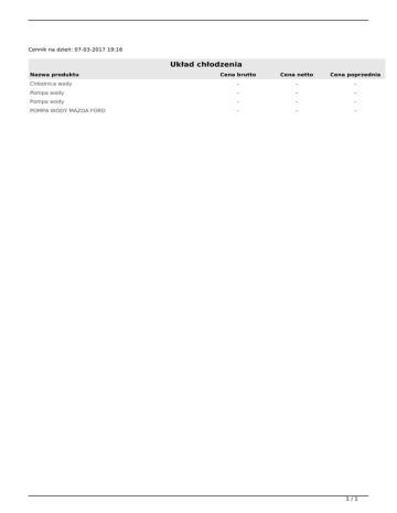 Cennik na dzień: 07-03-2017 19:16 Układ chłodzenia Nazwa produktu Cena brutto Cena netto Cena poprzednia Chłodnica wody - - - Pompa wody - - - Pompa wody - - - POMPA WODY MAZDA FORD - - - 1/1 Powered by TCPDF (www.tcpdf.org)
