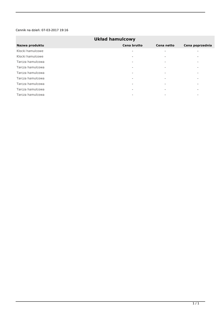 Cennik na dzień: 07-03-2017 19:16 Układ hamulcowy Nazwa produktu Cena brutto Cena netto Cena poprzednia Klocki hamulcowe - - - Klocki hamulcowe - - - Tarcza hamulcowa - - - Tarcza hamulcowa - - - Tarcza hamulcowa - - - Tarcza hamulcowa - - - Tarcza hamulcowa - - - Tarcza hamulcowa - - - Tarcza hamulcowa - - - 1/1 Powered by TCPDF (www.tcpdf.org)
