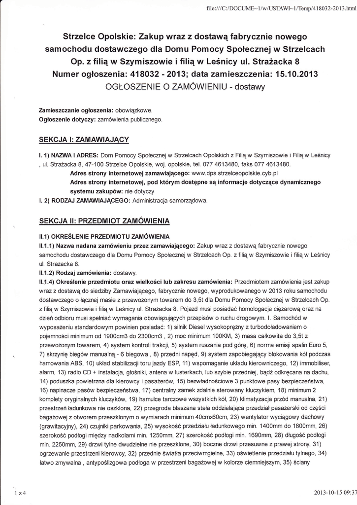 Numer ogłoszenia: 418032 - 2013; data zamieszczenia: 15.10.2013