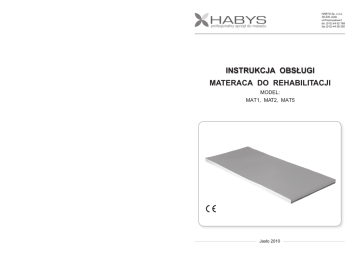 profesjonalny sprzêt do masa¿u HABYS Sp. z o.o. 38-200 Jas³o ul.Przemys³owa1 tel. (013) 44 62 788 fax (013) 44 58 350 38-200 Jas³o, ul. Przemys³owa 1 tel. (013) 44 62 788, fax (013) 44 58 350 INSTRUKCJA OBS£UGI MATERACA DO REHABILITACJI MODEL: MAT1, MAT2, MAT5 Jas³o 2010 MATERAC JEDNOCZÊŒCIOWY I. Dane techniczne D³ugoœæ Szerokoœæ Wysokoœæ 195 lub 200 cm 80 lub 100 cm 5 lub 10 cm II. Zastosowanie Materace przeznaczone s¹ do wykonywania zabiegów rehabilitacyjnych w celu ³agodzenia skutków urazów, a tak¿e w zabiegach fizjoterapeutycznych. Materace wykorzystywane mog¹ byæ w: - gabinetach lekarskich i odnowy biologicznej - oœrodkach zdrowia - w domu u pacjenta III. Budowa Materace wykonane z twardej pianki poliuretanowej, pokryte dzianin¹ powlekan¹. IV. Czyszczenie i dezynfekcja Czyœciæ roztworem ³agodnego detergentu (myd³o, szampon) w ciep³ej wodzie przy u¿yciu miêkkiej g¹bki. W przypadku silnych zabrudzeñ do przetarcia powierzchni mo¿na zastosowaæ 25% (max 40%) roztwór alkoholu etylowego. Zabrania siê: stosowania past, wosków, rozpuszczalników, œrodków do czyszczenia skóry naturalnej; prania wodnego, prasowania, kontaktu z nagrzanymi powierzchniami (grzejnik, kaloryfer), przebijania materia³u ostrymi przedmiotmi. Dezynfekowaæ spirytusem i sporadycznie 5% Lizolem. V. Uwagi eksploatacyjne 1. 2. Materac przeznaczony jest do zabiegów tylko dla jednej osoby jednoczeœnie, Nie dopuszcza siê przenoszenia materaca wraz z pacjentem. VI. Zalecenia 1. 2. U¿ytkowaæ materac zgodnie z instrukcj¹ obs³ugi, Zapoznaæ siê z warunkami gwarancji i ich przestrzegaæ.