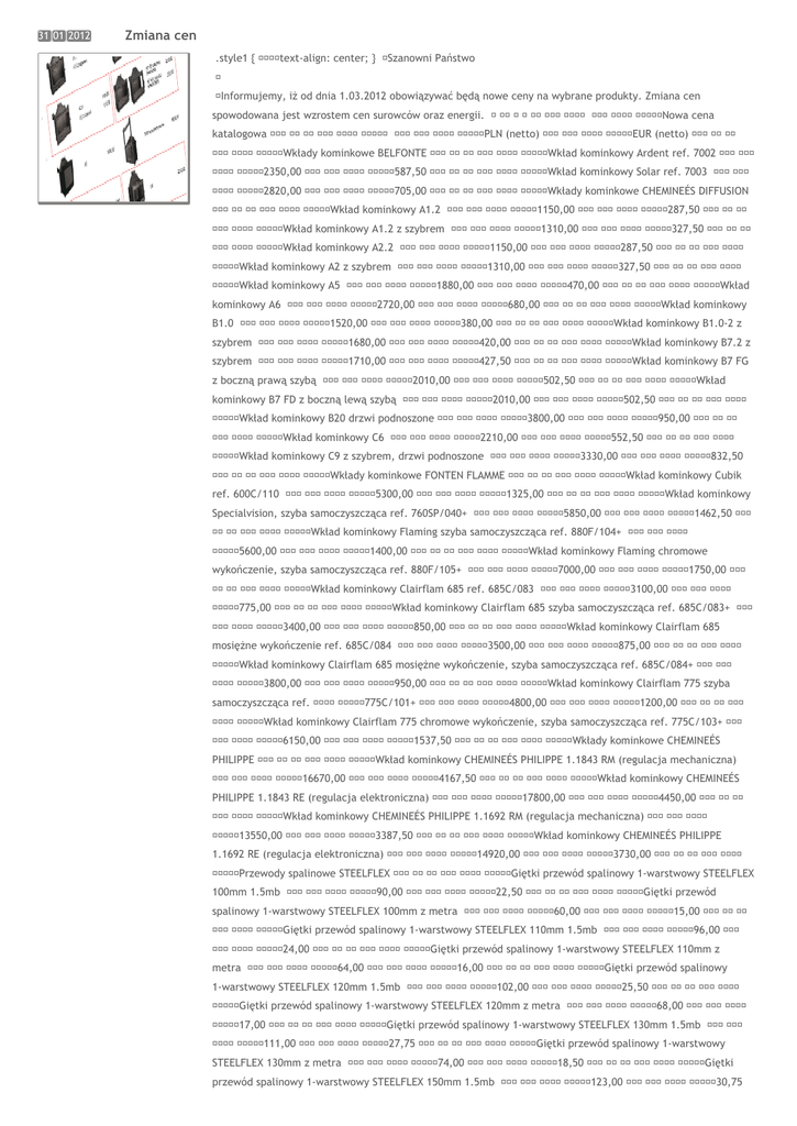 Informujemy, iż od dnia 1.03.2012 obowiązywać będą nowe ceny na wybrane produkty. Zmiana cen