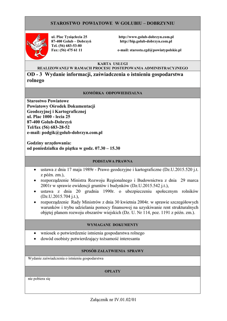 OD - 3 Wydanie informacji, zaświadczenia o istnieniu gospodarstwa