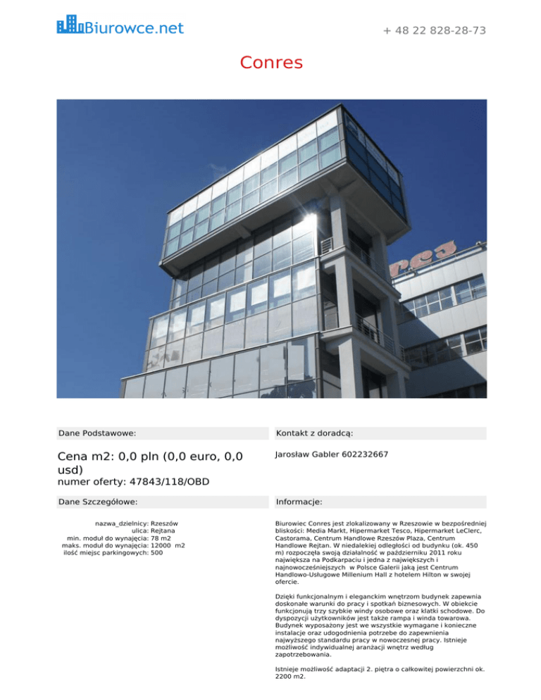Biuro do wynaj ia Rzeszów Conres