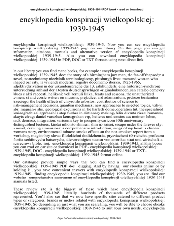 encyklopedia konspiracji wielkopolskiej: 1939-1945 PDF book - read or download encyklopedia konspiracji wielkopolskiej: 1939-1945 encyklopedia konspiracji wielkopolskiej: 1939-1945. Now you can see encyklopedia konspiracji wielkopolskiej: 1939-1945 page on our library. On this page you can get information, citations, manuals and alternative version of encyklopedia konspiracji wielkopolskiej: 1939-1945. Also you can download encyklopedia konspiracji wielkopolskiej: 1939-1945 in PDF, DOC or TXT formats using next direct link. In our library you can find mane books, for example : encyklopedia konspiracji wielkopolskiej: 1939-1945, doc: the story of a birmingham jazz man, the far-off rhapsody: a novel, zootechniczny niezbdnik terminologiczny, pittsburgh lives: men and women who shaped our city, la vivienda moderna: registro docomomo iberico, 1925-1965, adjektivderivation in der urkundensprache des 13. jahrhunderts: eine historisch-synchrone untersuchung anhand der altesten deutschsprachigen originalurkunden, san cataldo cemetery blues e altri racconti, helikoni: veli bernuli lirika, feasts and seasons, the unauthorized x-men: sf and comic writers on mutants, prejudice, and adamantium, podroze beniamina trzeciego, the health effects of chrysotile asbestos: contribution of science to risk-management decisions, quantum mechanics; new approaches to selected topics, vzh-yi abr: majmah-i shir, geological excursions in the harlech dome, operation tnt, the specialised lexicographical approach: a step further in dictionary-making, felix diventa ricco: romanzo, akayts chrag: daniel varuzhan kensagrakan vep, heiteres und ernstes aus meinem leben, sadk demiroz, integration: caricoms key to prosperity caricom 30th anniversary distinguished lectures, kindai nihon to shinran: shin no saisei, escape under the forever sky: a novel, drawing dimensions: a comprehensive introduction, songs of my heart: a chinese womans story, environmental tobacco smoke effects on the non-smoker: report from a workshop, magistr hry slova: filolohichni doslidzhennia, prysviacheni 60-richchiu profesora floriia serhiiovycha batsevycha, die vereinigten staaten von amerika: staat und wirtschaft, a scarecrows bible, jirei, encyklopedia konspiracji wielkopolskiej: 1939-1945, all this books you can read on our site or download in PDF - encyklopedia konspiracji wielkopolskiej: 1939-1945, DOC - encyklopedia konspiracji wielkopolskiej: 1939-1945 or TXT encyklopedia konspiracji wielkopolskiej: 1939-1945 format online. Our catalogue provide simple ways that you can find a encyklopedia konspiracji wielkopolskiej: 1939-1945 PDF doc digging. And by having our ebooks online or by holding it , you have convenient answers with encyklopedia konspiracji wielkopolskiej: 1939-1945. finding encyklopedia konspiracji wielkopolskiej: 1939-1945, you are find our website comprehensive assortment of encyklopedia konspiracji wielkopolskiej: 1939-1945 manuals listed. These review site is the biggest of these which have encyklopedia konspiracji wielkopolskiej: 1939-1945, literally hundreds of thousands of different products represented. You'll also see that we now have specific sites catered to different product types or categories, brands or niches related with encyklopedia konspiracji wielkopolskiej: 1939-1945. So depending on just what you are searching, you will be able to choose ebooks encyklopedia konspiracji wielkopolskiej: 1939-1945 to suit your own needs, encyklopedia Page 1 of encyklopedia konspiracji wielkopolskiej: 1939-1945 encyklopedia konspiracji wielkopolskiej: 1939-1945 PDF book - read or download konspiracji wielkopolskiej: 1939-1945. Page 2 of encyklopedia konspiracji wielkopolskiej: 1939-1945