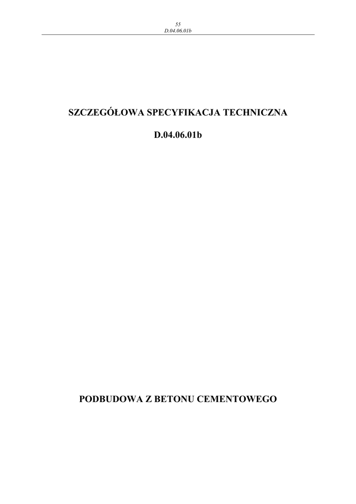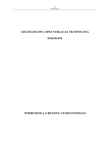 55 D.04.06.01b SZCZEGÓŁOWA SPECYFIKACJA TECHNICZNA D.04.06.01b PODBUDOWA Z BETONU CEMENTOWEGO 56 D.04.06.01b 1. Wstęp 1.1. Przedmiot ST Przedmiotem niniejszej Specyfikacji Technicznej są wymagania dotyczące wykonania i odbioru robót związanych z wykonaniem podbudowy z betonu cementowego w ramach remontu nawierzchni asfaltowej ulic Dworcowej i Zielonej w m. Owińska (na odcinku od ul. Kolejowej do ul. Ks. A. Piotrowskiego). 1.2. Zakres stosowania ST Specyfikacja Techniczna stosowana jest jako dokument przetargowy i kontraktowy przy zlecaniu i realizacji robót wymienionych w punkcie 1.1. 1.3. Zakres robót objętych ST Ustalenia zawarte w niniejszej specyfikacji dotyczą prowadzenia robót przy wykonaniu podbudowy z betonu cementowego i obejmują: - wykonanie podbudowy z betonu cementowego B20 (C16/20) grubości 22cm (zatoki autobusowe) 1.4. Określenia podstawowe 1.4.1. Podbudowa - dolna część nawierzchni słuŜąca do przenoszenia obciąŜeń od ruchu na podłoŜe. 1.4.2. Podbudowa z betonu cementowego - warstwa zagęszczonej mieszanki betonowej, która po osiągnięciu wytrzymałości na ściskanie odpowiadającej klasie betonu B 15 (lub wyjątkowo wyŜszej), stanowi fragment nośnej części nawierzchni, słuŜący do przenoszenia obciąŜeń od ruchu na podłoŜe. G 1.4.3. Klasa betonu - symbol literowo-liczbowy (np. betonu klasy B 15 przy R b = 15 MPa), określający G wytrzymałość gwarantowaną betonu (R b ). 1.4.4. Mieszanka betonowa - mieszanina wszystkich składników uŜytych do wykonania betonu przed zagęszczeniem. 1.4.5. Szczelina skurczowa pełna - szczelina dzieląca płyty betonowe na całej grubości i umoŜliwiająca tylko kurczenie się płyt. 1.4.6. Szczelina skurczowa pozorna - szczelina dzieląca płyty betonowe w części górnej przekroju poprzecznego. 1.4.7. Masa zalewowa na gorąco - mieszanina składająca się z asfaltu drogowego, modyfikowanego dodatkiem kauczuku lub Ŝywic syntetycznych, wypełniaczy i innych dodatków uszlachetniających, przeznaczona do wypełniania szczelin nawierzchni na gorąco. 1.4.8. Masa zalewowa na zimno - mieszanina Ŝywic syntetycznych jedno- lub dwuskładnikowych, zawierająca konieczne dodatki uszlachetniające i wypełniające, przeznaczona do wypełniania szczelin na zimno. 1.4.9. Wkładki uszczelniające do szczelin - elastyczne profile zamknięte lub otwarte, zwykle wykonane z tworzywa sztucznego, wciskane w szczelinę w celu jej uszczelnienia. 1.4.10. Wskaźnik róŜnoziarnistości - wielkość charakteryzująca grunty niespoiste, określona wg wzoru U = d60 : d10, gdzie d60 - średnica oczek sita, przez które przechodzi 60% gruntu, d10 - średnica oczek sita, przez które przechodzi 10% gruntu. 1.4.11. Pozostałe określenia podstawowe są zgodne z obowiązującymi, odpowiednimi polskimi normami i z definicjami podanymi w ST D-M-00.00.00 „Wymagania ogólne” 1.5. Ogólne wymagania dotyczące robót Wykonawca robót jest odpowiedzialny za jakość ich wykonania oraz za zgodność z Dokumentacją Projektową, ST i poleceniami InŜyniera. Ogólne wymagania dotyczące robót podano w ST D-M.00.00.00. „Wymagania Ogólne”. 57 D.04.06.01b 2. Materiały 2.1. Ogólne wymagania dotyczące materiałów Ogólne wymagania dotyczące materiałów, ich pozyskiwania i składowania, podano w ST D-M-00.00.00 „Wymagania ogólne” . 2.2. Materiały do wykonania robót 2.2.1. Zgodność materiałów z dokumentacją projektową i aprobatą techniczną Materiały do wykonania podbudowy z betonu cementowego powinny być zgodne z ustaleniami dokumentacji projektowej i ST oraz z aprobatą techniczną IBDiM. 2.2.2. Cement Do produkcji mieszanki betonowej naleŜy stosować cementy odpowiadające wymaganiom PN-EN 1971:2002 [1] klasy 32,5: cement portlandzki CEM I, mieszany CEM II, hutniczy CEM III lub inne zaakceptowane przez InŜyniera. 2.2.3. Kruszywo Do wytwarzania mieszanki betonowej naleŜy stosować kruszywo mineralne naturalne, grys z otoczaków lub surowca skalnego, kruszywo z ŜuŜla wielkopiecowego kawałkowego oraz mieszanki tych kruszyw. Uziarnienie kruszywa wchodzącego w skład mieszanki betonowej powinno być tak dobrane, aby mieszanka ta wykazywała maksymalną szczelność i urabialność przy minimalnym zuŜyciu cementu i wody. Właściwości kruszywa oraz ich cechy fizyczne i chemiczne powinny odpowiadać wymaganiom określonym w PN-S-96014:1997 [7]. 2.2.4. Woda Do wytwarzania mieszanki betonowej i pielęgnacji podbudowy moŜe być stosowana bez badania woda pitna wodociągowa. W przypadku stosowania wody z innych źródeł, powinna ona odpowiadać wymaganiom normy PN-EN 1008:2004 [6]. 2.2.5. Domieszki do betonu W celu zmiany warunków wiązania i twardnienia, poprawy właściwości betonu i mieszanki betonowej oraz ograniczenia zawartości cementu mogą być stosowane domieszki według PN-EN 934-2:1999 [5]. Przy wyborze domieszki naleŜy uwzględnić jej zgodność z cementem. Zaleca się wykonać badanie zgodności w laboratorium oraz sprawdzić na odcinku próbnym. 2.2.6. Zalewa drogowa lub wkładki uszczelniające w szczelinach Do wypełnienia szczelin w podbudowie betonowej naleŜy stosować specjalne masy zalewowe, wbudowywane na gorąco lub na zimno, względnie wkładki uszczelniające, posiadające aprobatę techniczną IBDiM. 2.2.7. Materiały do pielęgnacji podbudowy Do pielęgnacji świeŜo ułoŜonej podbudowy z betonu cementowego naleŜy stosować: − preparaty powłokowe, − folie z tworzyw sztucznych. Dopuszcza się pielęgnację warstwą piasku naturalnego, bez zanieczyszczeń organicznych lub warstwą włókniny o grubości, przy obciąŜeniu 2 kPa, co najmniej 5 mm, utrzymywanej w stanie wilgotnym przez zraszanie wodą. 2.2.8. Beton Zawartość cementu w 1 m3 zagęszczonej mieszanki betonowej nie powinna przekraczać 250 kg. Konsystencja mieszanki betonowej powinna być co najmniej gęstoplastyczna. W podbudowie naleŜy stosować beton o wytrzymałości odpowiadającej klasie B20 (C16/20)