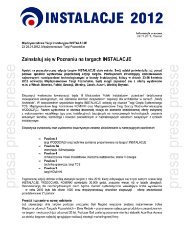 Targi INSTALACJE_informacja prasowa_28.11.2011