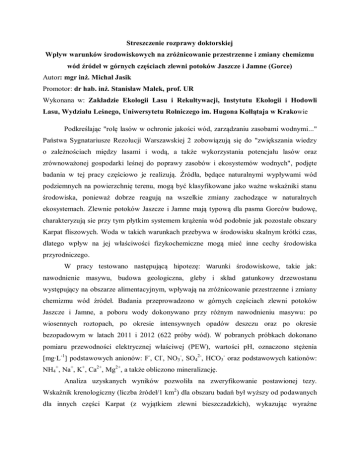 Streszczenie rozprawy doktorskiej Wpływ warunków
