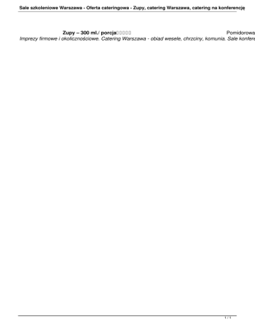Sale szkoleniowe Warszawa - Oferta cateringowa - Zupy, catering Warszawa, catering na konferencję Zupy – 300 ml./ porcja Pomidorowa Imprezy firmowe i okolicznościowe. Catering Warszawa - obiad wesele, chrzciny, komunia. Sale konfere 1/1