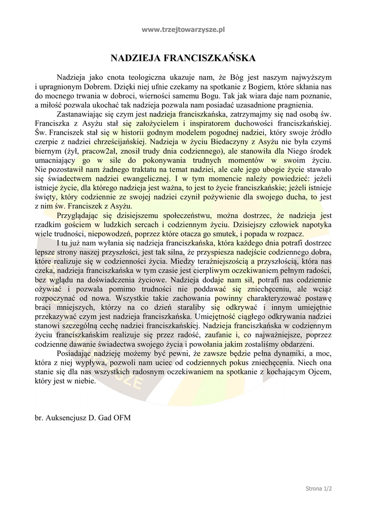 Nadzieja franciszkańska, br. Auksencjusz D. Gad