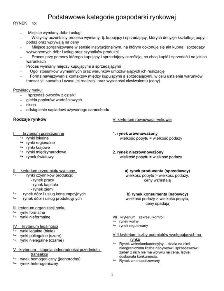 Podstawowe kategorie gospodarki rynkowej