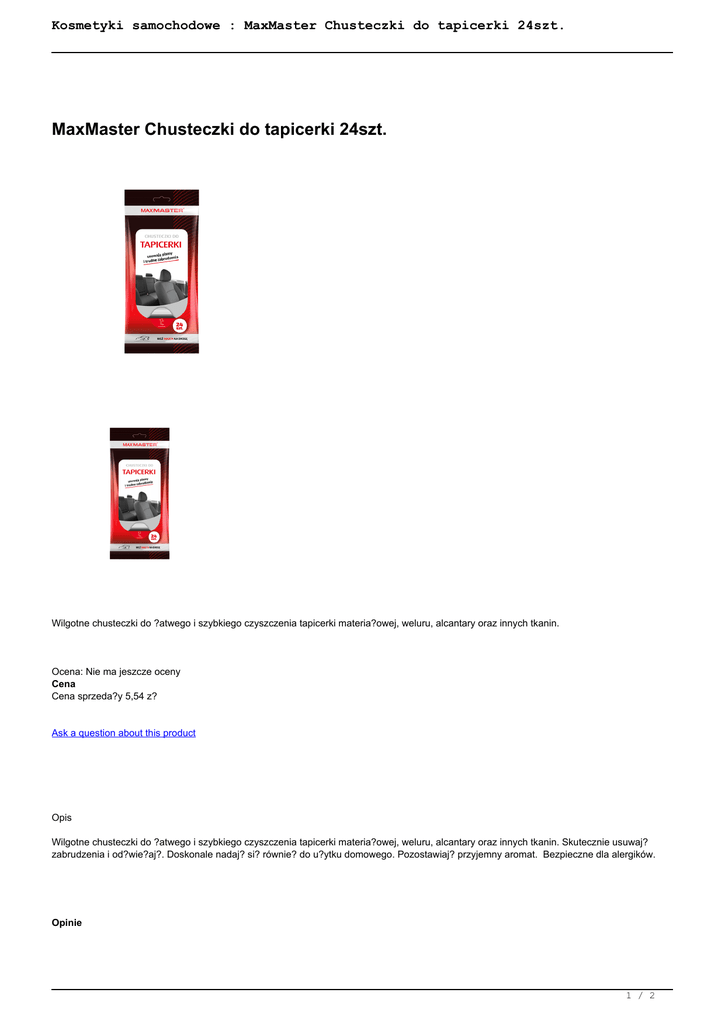 Kosmetyki samochodowe : MaxMaster Chusteczki do tapicerki 24szt.