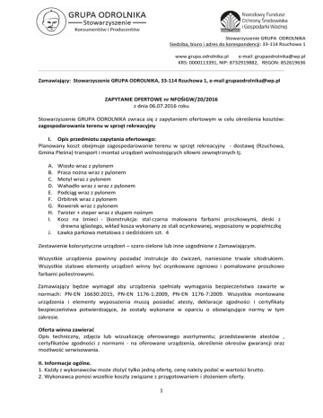 Zapytanie ofertowe nr 25/2016 - Stowarzyszenie Grupa Odrolnika