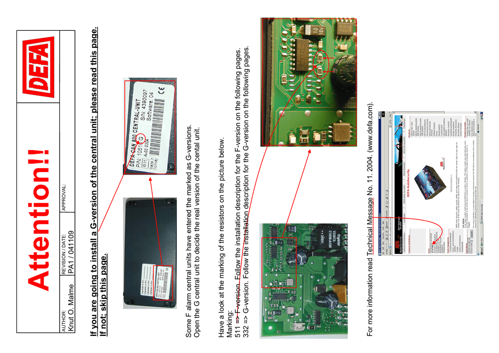 / D A T E : P A 1 / 0 4 1 1 0 9 R E V IS IO N A P P R O V A L : e a k in = > = > lo o k a t th e m a r k in g o f th e r e s is to r s o n th e p ic tu r e b e lo w . g : F - v e r s io n . F o llo w th e in s ta lla tio n d e s c r ip tio n fo r th e F - v e r s io n o n th e fo llo w in g p a g e s . G - v e r s io n . F o llo w th e in s ta lla tio n d e s c r ip tio n fo r th e G - v e r s io n o n th e fo llo w in g p a g e s . C A N -(M )G M a k e : S A A B F o r m o r e in fo r m a tio n r e a d T e c h n ic a l M e s s a g e N o . 1 1 . 2 0 0 4 . ( w w w .d e fa .c o m ) . H a v M a r 5 1 1 3 3 2 S o m e F a la r m c e n tr a l u n its h a v e e n te r e d th e m a r k e d a s G - v e r s io n s . O p e n th e G c e n tr a l u n it to d e c id e th e r e a l v e r s io n o f th e c e n ta l u n it. If y o u a r e g o in g to in s ta ll a G -v e r s io n o f th e c e n tr a l u n it; p le a s e r e a d th is p a g e . If n o t; s k ip th is p a g e . K n u t O . M a lm e A U T H O R : A tte n tio n !! D O C . N O : C A N -(M )G -S A A B -9 -3 -0 3 > M o d e l: 9 -3 Y e a r: 2 0 0 3 T y p e : S e d a n M a k e : S A A B C A N -(M )G D O C . N O : C A N -(M )G -S A A B -9 -3 -0 3 > N B ! T h is in s fo r th e in s ta lla fro m m o d e l to in s ta lla tio n , b e m a n u fa c tu re r. d a m a g e s th a t ta tio m s D m lla tio n d ia g r a m m u s t o n . E q u ip m e n t d e liv e r e o d e l a n d fro m m a rk e t u r e to c h e c k c a r e fu lly E F A A .S is n o t lia b le a y o c c u r d u e to fa u lty n ly b e u s e d d w ith th e c to m a rk e t. B th e o r ig in a l to c o m p e n s o r in s u ffic ie M o d e l: 9 -3 Y e a r: 2 0 0 3 - T y p e : S e d a n T R U N K a s a g u id e lin e a r v a r ie s c o n s id e r a b ly e fo r e s ta r tin g th e d ia g r a m fr o m th e c a r a te f o r p o s s ib le n t in s ta lla tio n m a n u a ls . B L U C O N N E C T O R 4 4 5 0 3 2 3 6 B L K C O N N E C T O R : P IN P IN 2 3 2 0 D 8 D 6 B R N 1 5 1 9 8 1 4 1 7 P IN P IN 2 : L (R 3 : Y (L 4 : B (L 9 : B (R T B IG E L E F R N E F R N IG L U H T F R O N T ) T F R O /W H T T S ID E /L T B R H T S ID N N T ) ) E ) B R N /Y E L 3 x 6 0 0 5 3 5 B L K /G R Y G R Y /R E D G R Y /B L K 3 x 6 0 0 5 3 5 R E D B L K 2 5 A R E D G R Y C O N N E C T O R P IN N O T E !!! R E - C - S - R - D Q U IR E e n tra l o ftw a r e s is to io d e s D : u n it r e e re v : r 1 8 0 o (2 x 6 0 v : F s e e w w w .d e fa .c o m /fla s h h m (1 x 6 0 0 6 3 3 ) 0 5 3 5 ) O R : R E - C - S - D Q U IR e n tra o ftw a io d e s 2 2 E D l u re (2 : n it r e v : G r e v : s e e w w w .d e fa .c o m /fla s h x 6 0 0 5 3 5 ) B E H IN D F U S E B O X L E F T S ID E D A S H B O A R D D a te : 2 0 0 4 .0 5 .0 5 R e v : B P a g e : 1 o f 3 M a k e : S A A B C A N -(M )G M o d e l: 9 -3 Y e a r: 2 0 0 3 - T y p e : S e d a n D O C . N O : C A N -(M )G -S A A B -9 -3 -0 3 > W IT H C E N T R A L U N IT R E V . F G R Y /B L K 1 0 2 P IN C O N N E C T O R 7 8 C O N N E C T O R 6 7 5 6 4 5 9 0 8 9 3 4 2 3 1 2 1 4 4 3 3 2 2 1 1 P 1 8 8 O R G /G R N 7 7 6 6 5 5 1 0 0 9 7 9 4 9 1 1 0 2 9 9 9 6 9 3 B E H IN D L E F T K IC K P A N E L 6 0 0 6 3 3 G R N (p in 8 ) W IT H C E N T R A L U N IT R E V . G G R Y /B L K 1 0 2 P IN C O N N E C T O R 7 8 C O N N E C T O R 6 7 5 6 4 5 P 1 8 8 7 7 6 6 5 5 9 0 8 9 1 0 0 9 7 9 4 9 1 1 0 2 9 9 9 6 9 3 3 4 2 3 1 2 1 4 4 3 3 2 2 1 1 O R G /G R N G R N (p in 8 ) D a te : 2 0 0 4 .0 5 .0 5 R e v : B P a g e : 2 o f 3 M a k e : S A A B C A N -(M )G M o d e l: 9 -3 Y e a r: 2 0 0 3 - T y p e : S e d a n D O C . N O : C A N -(M )G -S A A B -9 -3 -0 3 > U P L e v e l n r. 3 . D a te : 2 0 0 4 .0 5 .0 5 R e v : B P a g e : 3 o f 3