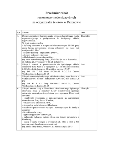 Przedmiar robót remontowo-modernizacyjnych na oczyszczalni