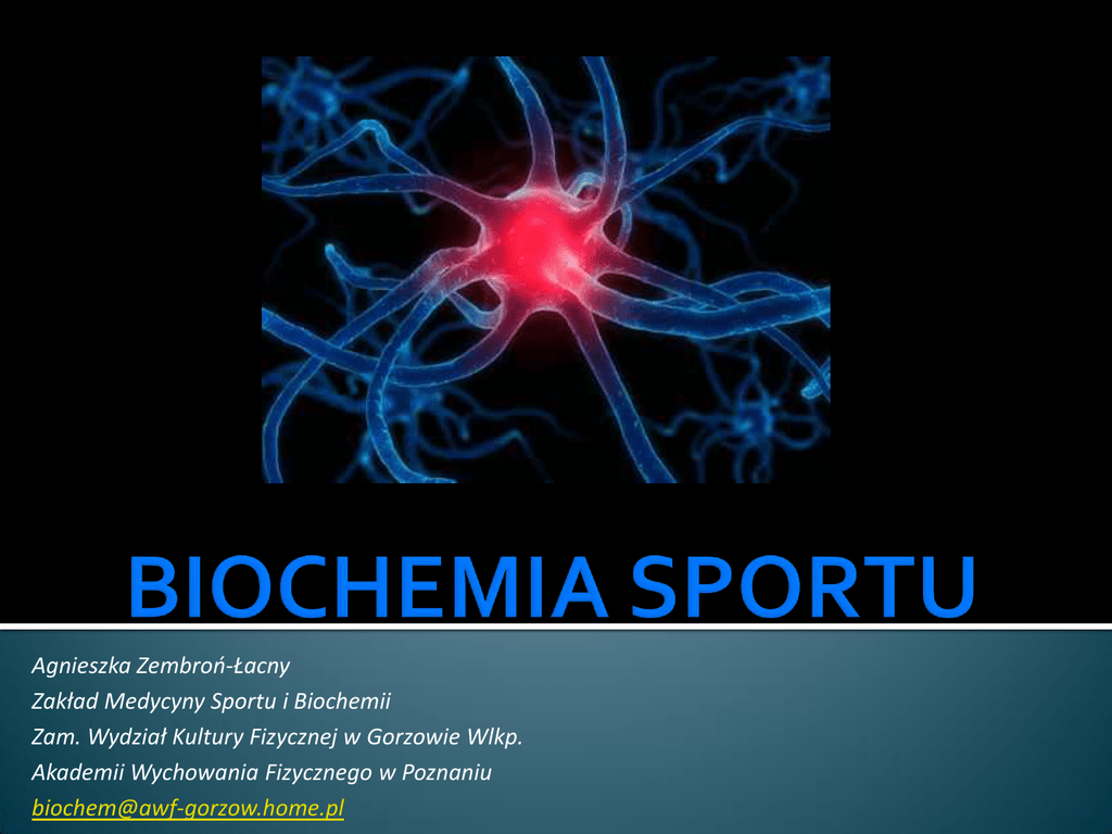 Agnieszka Zembroo-Łacny Zakład Medycyny Sportu i Biochemii Zam. Wydział Kultury Fizycznej w Gorzowie Wlkp. Akademii Wychowania Fizycznego w Poznaniu [email protected] Ilość informacji mięśnie mięśnie krew krew mocz dostęp do materiału „sampling” mocz Materiał gromadzony w spoczynku (przed wysiłkiem): ocena stanu wyjściowego lub adaptacji do wysiłku fizycznego (trening sportowy) Materiał gromadzony w trakcie wysiłku: ocena odpowiedzi organizmu na jednorazową próbę wysiłkową Materiał gromadzony po wysiłku (minuty, dni): ocena wielkości zmian indukowanych wysiłkiem fizycznym i szybkości powrotu do stanu równowagi organizmu Klasa Parametry Poziom żelaza Żelazo Hemoglobina i mioglobina Transferyna Całkowita zdolność wiązania żelaza (TIBC) Ferrytyna Metabolity Glukoza Mleczan Związki azotowe: mocznik, amoniak, kwas moczowy Enzymy Kinaza kreatynowa (CK), aminotransferazy (ASPAT, ALAT) Hormony Kortyzol, testosteron Żelazo Hemoglobina i mioglobina Transferyna 1,7 – 3,4 g/l Całkowita zdolność wiązania żelaza (TIBC) Ferrytyna 12 – 150 µg/L (kobiety), 15 – 200 µg/L (mężczyźni) hemoliza wysiłkowa nieprawidłowe wchłanianie pocenie i krwawienie NIEDOBÓR NIEUJAWNIONY (przedutajony) NIEDOBÓR UKRYTY (utajony) NIEDOBÓR JAWNY ŻELAZO 50-175 µg/dL FERRYTYNA Mężczyźni: 15-200 µg/L Kobiety: 12-150 µg/L TIBC Mężczyźni 251–391 μg/dL Kobiety 223–446 μg/dL spadek stężenia podczas wysiłku na skutek hipogklikemii wysiłkowej (niski poziom glikogenu mięśniowego i wątrobowego) – brak superkompensacji glikogenu i/lub uzupełniania puli CHO podczas wysiłku (wspomaganie ergogeniczne) spadek stężenia podczas wysiłku na skutek hipogklikemii z odbicia – spożycie bezpośrednio przed wysiłkiem CHO o wysokim indeksie glikemicznym pomiar glukozy pozwala wprowadzić ewentualne modyfikacje w diecie, aby zapobiec deficytowi energetycznemu i hipoglikemii podczas wysiłku jest to intensywność pracy (wyrażona jako prędkość biegu lub %VO2max) podczas wysiłku o wzrastającym obciążeniu, powyżej której następuje gwałtowny i ciągły wzrost stężenia mleczanu we krwi krzywa mleczanowa przesunięta w prawo pozwala określić zdolność do wysiłków wytrzymałościowych, inaczej zdolność do pozyskiwania energii na drodze przemian tlenowych stężenie mleczanu w progu beztlenowym jest indywidualnie zróżnicowane i może wahać się od 3 do 8 mmol /L wysiłek do osiągnięcia progu beztlenowego opiera się głównie o tlenowe przemiany energetyczne im lepszy jest stan wytrenowania wytrzymałościowego, tym później rozpoczyna się akumulacja mleczanu we krwi pomiary stężenia mleczanu po krótkotrwałym intensywnym wysiłku (najczęściej 30 s test Wingate) dostarczają informacji o udziale beztlenowych przemian glukozy w całkowitym wydatku energetycznym pozwalają na wybór właściwych pod względem intensywności ćwiczeń treningowych OCENA MOŻLIWOŚCI MIĘŚNI DO UZYSKIWANIA ENERGII NA DRODZE BEZTLENOWEJ Medycyna Sportowa 2000; 103 – numer poświęcony piłce nożnej Energetic area Supporting (aerobic) Aerobic Aerobic-anaerobic Anaerobic-lactate Anaerobic-alactate* Exercise load % 19 21 40 17 3 Lactate mmol . l-1 <2 2–4 4–8 >8 <5–6 PREPARATORY PERIOD December, 25 days Supporting (aerobic) Aerobic Aerobic-anaerobic Anaerobic-lactate Anaerobic-alactate* 17 25 42 13 3 <2 2–4 4–8 >8 <5–6 PLAY-OFF ROUND April, 20 days Supporting (aerobic) Aerobic Aerobic-anaerobic Anaerobic-lactate Anaerobic-alactate* 15 18 46 17 4 <2 2–4 4–8 >8 <5–6 PLAY-OFF ROUND May, 20 days Supporting (aerobic) Aerobic Aerobic-anaerobic Anaerobic-lactate Anaerobic-alactate* 13 20 49 12 6 <2 2–4 4–8 >8 <5–6 Training period PREPARATORY PERIOD November, 20 days *short duration work (< 10s) Zembron-Lacny i wsp. Physiol Res 2010; 58(2) ENERGIA katabolizm aminokwasów → amoniak → mocznik (cykl mocznikowy) katabolizm zasad purynowych (ATP, ADP, AMP, IMP) deaminacja AMP (kinaza adenylowa – miokinaza) amoniak kwas moczowy wysoki poziom w osoczu po wysiłkach krótkotrwałych o dużej intensywności świadczy o nasilonej deaminacji AMP – deficyt energetyczny jego wzrost jest związany ze stężeniem mleczanu wysoki poziom w osoczu po wysiłkach długotrwałych świadczy o nasilonym katabolizmie aminokwasów, szczególnie BCAA – niedobór węglowodanów, niski poziom glikogenu rzadko wykorzystywany w diagnostyce sportowej jego stężenie jest zależne od czasu trwania wysiłku aerobowego wzrost stężenia mocznika zaobserwowano po 10 godz. wysiłku triatlonistów, po meczu w piłkę nożną u zapaśników zmiany stężenia mocznika były wyraźnie skorelowane z wielkością obciążeń treningowych wzrost stężenia w osoczu odzwierciedla stopień degradacji puli nukleotydów adeninowych i stresu energetycznego zaobserwowano wzrost stężenia moczanu po 30 s teście Wingate, po biegu maratońskim, po biegach na dystansie 100, 800 i 5000 m brak specyfiki zmian ogranczna zastosowanie diagnostyczne tego metabolitu w sporcie marker uszkodzenia mięśni szkieletowych przy wysiłkach jednorazowych i powtarzanych spoczynkowy poziom CK u sportowców wynosi >200 U/l surowicy po intensywnym wysiłku może osiągnąć wartość nawet 10000 U/l największe zmiany są obserwowane po 24 – 48 h od zakończenia wysiłku (czas uwolnienia CK z mięśni do krwi) MECHANICZNE skurcz mięśni (ekscentryczny i izometryczny) kontakt z przeciwnikiem METABOLICZNE podwyższona temperatura ( w trakcie wysiłku temperatura wewnętrzna może przekroczyć 40oC) obniżone pH (kumulacja kwasu mlekowego) i zaburzenie procesu glikolizy reaktywne formy tlenu tzw. wolne rodniki – zaburzenie pracy łańcucha oddechowego zmiana stosunku ATP/ADP Zawodnicy Wysiłek CK przed wysiłkiem CK po wysiłku % wzrostu CK Piłkarze nożni Mecz 2 x 45 min 81 42 148 66 83 Zapaśnicy Walka zapaśnicza 4 x 5 min 118 70 427 170 260 Maratończycy Bieg około 221 min 61 47 339 294 455 
