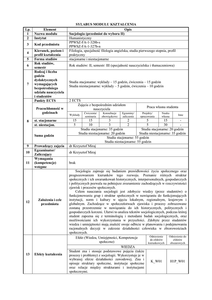 sylabus modułu kształcenia