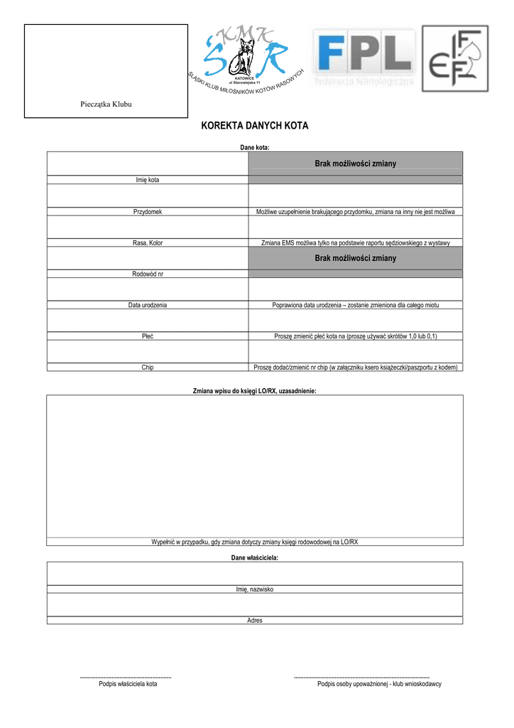 Podanie_o korekte danych - Śląski Klub Miłośników Kotów Rasowych