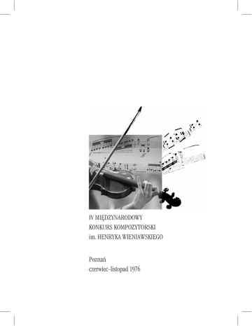 IV MIÊDZYNARODOWY KONKURS KOMPOZYTORSKI im. HENRYKA WIENIAWSKIEGO Poznañ czerwiec-listopad 1976 270 Po 10-letniej przerwie odby³ siê IV Konkurs Kompozytorski im. H. Wieniawskiego w nieco zmienionej formule. Przedmiotem rywalizacji by³ „utwór jednoczêœciowy lub o dowolnej formie cyklicznej, w dowolnym stylu i technice, na skrzypce solo lub z fortepianem, o czasie trwania nie przekraczaj¹cym 12 minut”. Konkurs przeprowadzono w dwóch etapach, rozdzielonych w czasie. Najpierw (1 czerwca – 31 lipca) jurorzy zapoznali siê z nades³anymi 128 pracami z 21 krajów: z Argentyny (3), Austrii (6), Belgii (5), Brazylii (4), Bu³garii (3), Czechos³owacji (10), Finlandii (1), Francji (4), Hiszpanii (2), Jugos³awii (3), Maroka (1), NRD (8), Polski (24), RFN (9), Rumunii (5), Szwajcarii (2), Szwecji (4), USA (13), Wielkiej Brytanii (9), W³och (9) i z ZSRR (3). Kompozycje, zakwalifikowane do II etapu, wykonano na publicznych przes³uchaniach (11-14 listopada) wobec pe³nego sk³adu jury. Sk³ad miêdzynarodowego jury tworzyli: W³odzimierz Kotoñski — Polska (przewodnicz¹cy), Gilbert Amy — Francja, Florian D¹browski — Polska (sekretarz), Rudolf Maros — Wêgry, Wolfgang Marschner — RFN (wiceprzewodnicz¹cy), Krzysztof Meyer — Polska Zakwalifikowane do II etapu kompozycje, wykonali podczas publicznych przes³uchañ, skrzypkowie. Magdalena Suchecka Jadwiga Kaliszewska Micha³ Grabarczyk i pianista Andrzej Tatarski IV MIÊDZYNARODOWY KONKURS KOMPOZYTORSKI im. HENRYKA WIENIAWSKIEGO 271 Ivo Petric z Jugos³awii — laureat I nagrody za Sonatê na skrzypce solo Ok³adka wydanego wkrótce w PWM nagrodzonego utworu oraz reprodukcja jego fragmentu 272 Równorzêdne dwie III nagrody (II nie przyznano) otrzymali dwaj Argentyñczycy: Guillermo Graetzer za kompozycjê Sostine na skrzypce i fortepian i Louis Gonzales — za utwór Stichomythias na skrzypce i fortepian
