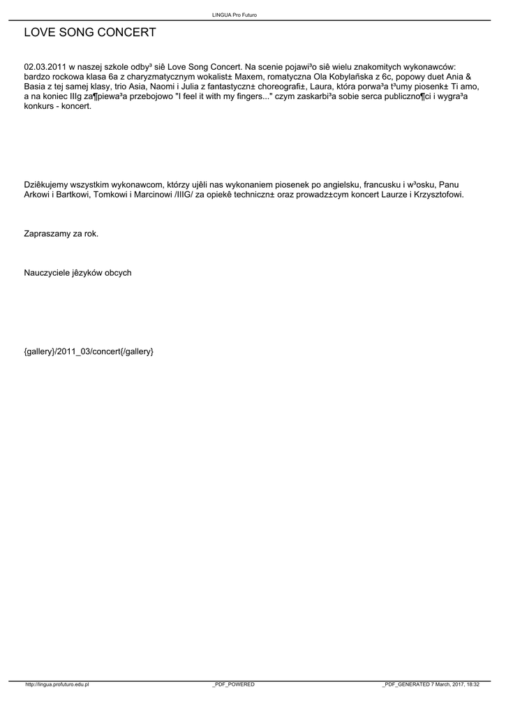 02.03.2011 w naszej szkole odby³ siê Love Song Concert. Na scenie pojawi³o siê wielu znakomitych wykonawców: