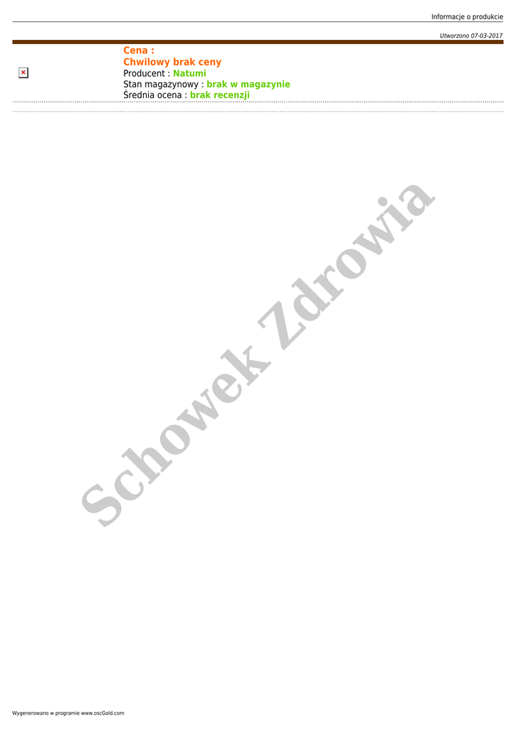 Informacje o produkcie Utworzono 07-03-2017 Cena : Chwilowy brak ceny Sc ho w ek Zd ro w ia Producent : Natumi Stan magazynowy : brak w magazynie Średnia ocena : brak recenzji Wygenerowano w programie www.oscGold.com