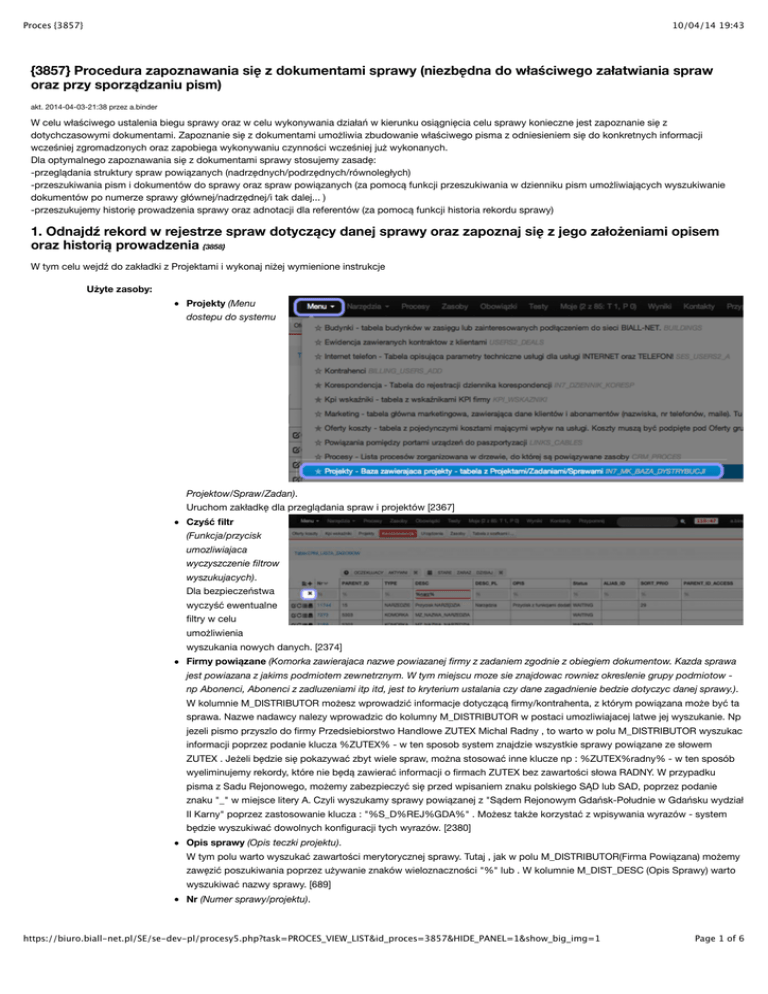 {3857} Procedura zapoznawania się z dokumentami sprawy (niezbędna do właściwego załatwiania spraw