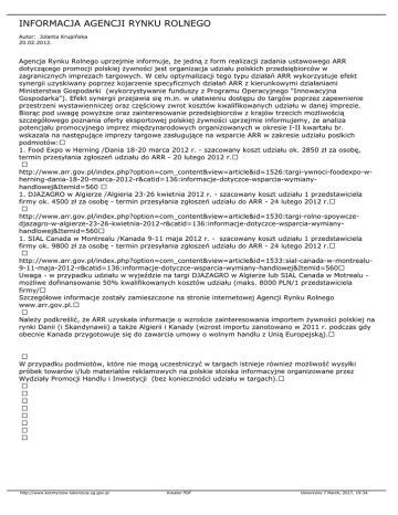 INFORMACJA AGENCJI RYNKU ROLNEGO