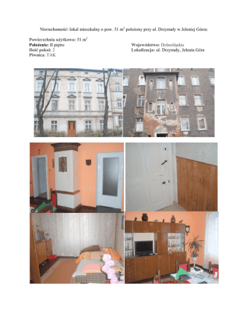 Nieruchomość: lokal mieszkalny o pow. 51 m2 położony przy ul