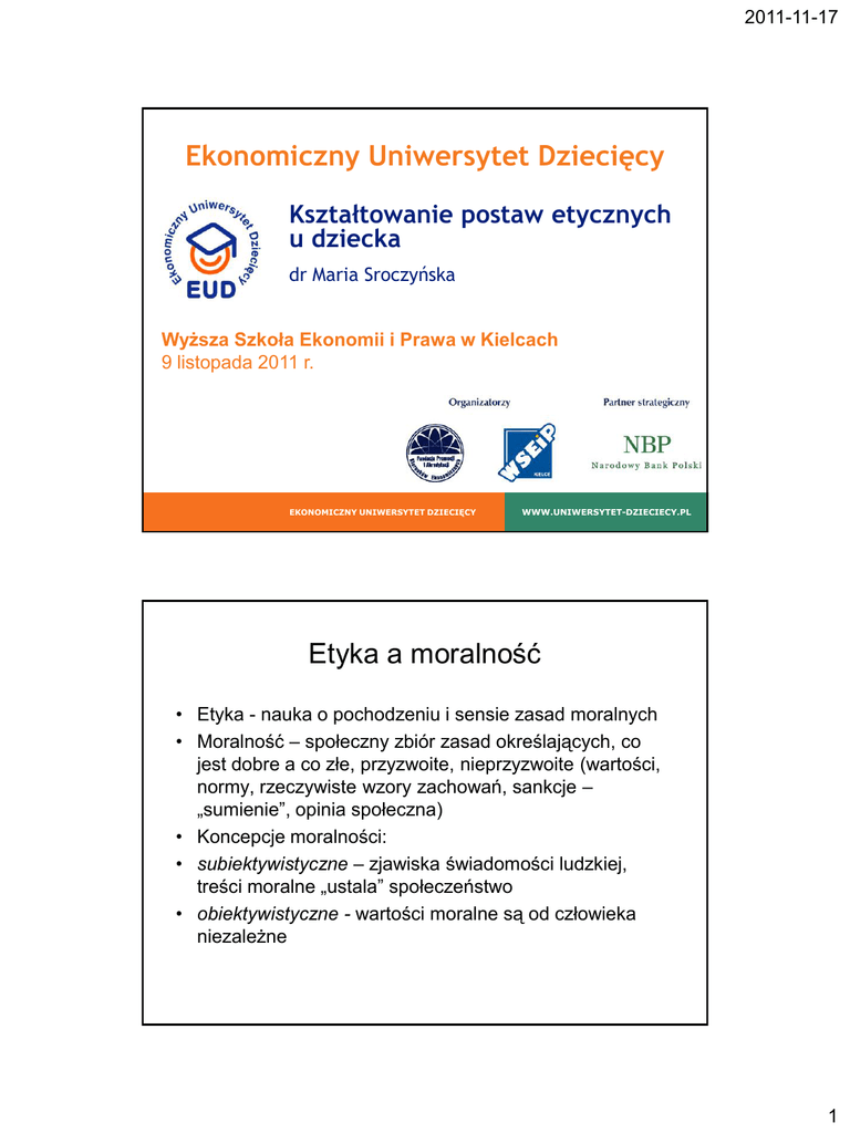 Ekonomiczny Uniwersytet Dziecięcy Etyka a moralność