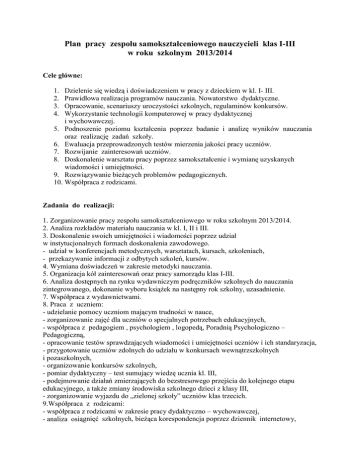 Plan pracy zespołu samokształceniowego nauczycieli klas I