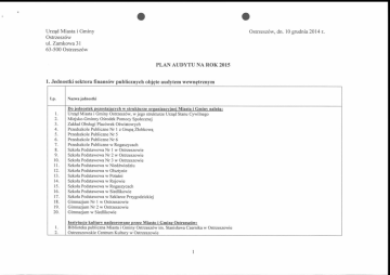 Miasta i Gniny Ostrzeszow mstaoie przeprowadzony aud'4 pozrplanowy dla zadan, k6re zajely kolejne miejsc€ w rankingu.