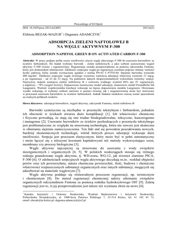 adsorpcja zieleni naftolowej b na węglu aktywnym f-300