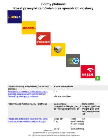 Koszt przesyłki zamówień oraz sposób ich dostawy - Pomoc