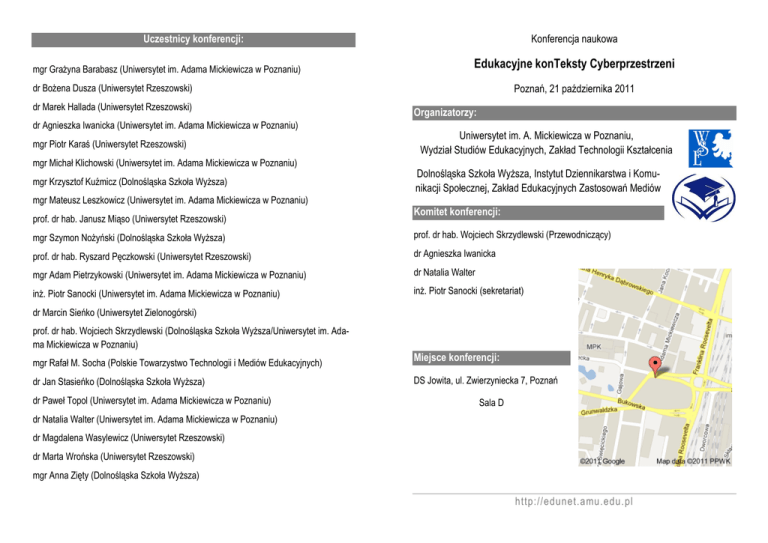 Program konferencji - Uniwersytet im. Adama Mickiewicza