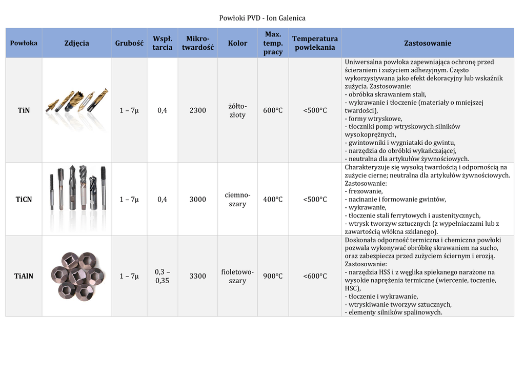 Powłoki PVD - Ion Galenica Zdjęcia Grubość Wspł. tarcia Mikro