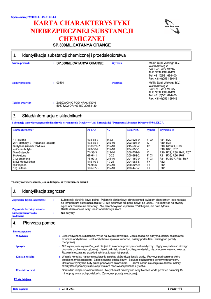 Identyfikacja substancji chemicznej i przedsiebiorstwa
