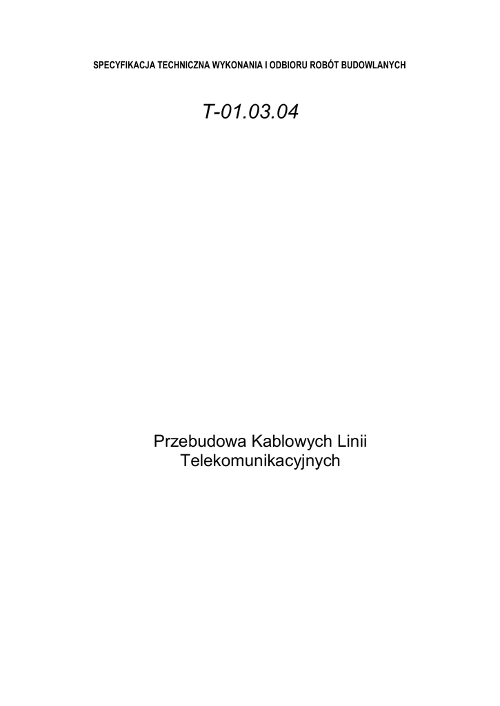 telekomunikacyjnych linii kablowych na odcinkach jak pokazano w dokumentacji technicznej.