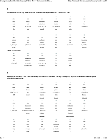 Ewangeliczny Przekład Interlinearny Biblii - Nowy Testament (kodeks ... 1 z 17 http://biblia.oblubienica.eu/interlinearny/small1/ch/89 1 Potem znów ukazał się Jezus uczniom nad Morzem Tyberiadzkim. A ukazał się tak: 1 2 3 4 5 6 3326 5023 5319 1438 3825 3588 µετα ταυτα εφανερωσεν εαυτον παλιν ο meta tauta efanerōsen heauton palin ho Prep pd Acc Pl n vi Aor Act 3 Sg pf 3 Acc Sg m Adv t_ Nom Sg m Po- tem ukazał się znów 7 8 9 10 11 12 2424 3588 3101 1909 3588 2281 ιησους τοις µαθηταις επι της θαλασσης iēsous tois matētais epi tēs talassēs n_ Nom Sg m t_ Dat Pl m n_ Dat Pl m Prep t_ Gen Sg f n_ Gen Sg f uczniom nad 15 16 Jezus morzem [JHWH jest zbawieniem] 13 14 17 3588 5085 5319 1161 3779 της τιβεριαδος εφανερωσεν δε ουτως tēs tiberiados efanerōsen de houtōs n_ Gen Sg f vi Aor Act 3 Sg Conj Adv Tyberiadzkim ukazał się zaś tak t_ Gen Sg f 2 Byli razem: Szymon Piotr, Tomasz zwany Bliźniakiem, Natanael z Kany Galilejskiej, (synowie) Zebedeusza i dwaj inni spośród Jego uczniów. 1 2 3 4 5 6 2258 3674 4613 4074 2532 2381 ησαν οµου σιµων πετρος και θωµας ēsan homou simōn petros kai tōmas vi Impf vxx 3 Pl Adv n_ Nom Sg m n_ Nom Sg m Conj n_ Nom Sg m Byli razem Szymon PIotr i Tomasz [słyszeć] [kamyk] [bliźniak] 7 8 9 10 11 12 3588 3004 1324 2532 3482 3588 ο λεγοµενος διδυµος και ναθαναηλ ο ho legomenos didumos kai natanaēl ho t_ Nom Sg m vp Pres Pas Nom Sg m n_ Nom Sg m Conj ni proper t_ Nom Sg m zwany Didymos i Natanael [bliźniak] [dany od Boga] 13 14 15 16 17 18 575 2580 3588 1056 2532 3588 απο κανα της γαλιλαιας και οι apo kana tēs galilaias kai hoi Prep ni proper t_ Gen Sg f n_ Gen Sg f Conj t_ Nom Pl m z Kany Galilejskiej i 2012-01-14 13:38 Ewangeliczny Przekład Interlinearny Biblii - Nowy Testament (kodeks ... 2 z 17 [trzcina] 19 http://biblia.oblubienica.eu/interlinearny/small1/ch/89 [przesunąć] 20 21 22 23 24 3588 2199 του ζεβεδαιου 2532 243 1537 3588 και αλλοι εκ των tou zebedaiou kai alloi ek tōn t_ Gen Sg m n_ Gen Sg m Conj a_ Nom Pl m Prep t_ Gen Pl m Zebedeusza i inni z [JH obdarzył] 25 26 27 3101 846 1417 µαθητων αυτου δυο matētōn autou duo n_ Gen Pl m pp Gen Sg m a_ Nom uczniów Jego dwaj 3 Szymon Piotr powiedział: Idę łowić ryby. A oni mu na to: Pójdziemy i my z tobą. Wyszli wnet więc, wsiedli do łodzi, lecz tej nocy nic nie złowili. 1 2 3 4 5 6 3004 846 4613 4074 5217 232 λεγει αυτοις σιµων πετρος υπαγω αλιευειν legei autois simōn petros hupagō halieuein vi Pres Act 3 Sg pp Dat Pl m n_ Nom Sg m n_ Nom Sg m vi Pres Act 1 Sg vn Pres Act Mówi im Szymon Piotr idę łowić ryby [słyszeć] [kamyk] 7 8 9 10 11 12 3004 846 2064 2532 2249 4862 λεγουσιν αυτω ερχοµεθα και ηµεις συν legousin autō erchometa kai hēmeis sun vi Pres Act 3 Pl pp Dat Sg m vi Pres midD/pasD 1 Pl Conj pp 1 Nom Pl Prep mówią mu przychodzimy i my z 13 14 15 16 17 18 4671 1831 2532 305 1519 3588 σοι εξηλθον και ανεβησαν εις το soi eksēlton kai anebēsan eis to pp 2 Dat Sg vi 2Aor Act 3 Pl Conj vi 2Aor Act 3 Pl Prep t_ Acc Sg n tobą wyszli i wstąpili do 19 20 21 22 23 24 4143 2117 2532 1722 1565 3588 πλοιον ευθυς και εν εκεινη τη ploion eutus kai en ekeinē tē n_ Acc Sg n Adv Conj Prep pd Dat Sg f t_ Dat Sg f łodzi wnet i w tą natychmiast 25 26 27 2012-01-14 13:38 Ewangeliczny Przekład Interlinearny Biblii - Nowy Testament (kodeks ... 3 z 17 3571 4084 3762 νυκτι επιασαν ουδεν nukti epiasan ouden n_ Dat Sg f vi Aor Act 3 Pl a_ Acc Sg n noc złapali nic http://biblia.oblubienica.eu/interlinearny/small1/ch/89 4 A gdy nastał wczesny ranek, Jezus stanął na brzegu; jednakże uczniowie nie rozpoznali, że to jest Jezus. 1 2 3 4 5 6 4405 1161 2235 1096 2476 3588 πρωιας δε ηδη γενοµενης εστη ο prōias de ēdē genomenēs hestē ho n_ Gen Sg f Conj Adv vp 2Aor midD Gen Sg f vi 2Aor Act 3 Sg t_ Nom Sg m Rano zaś już stawało się stanął Wczesnym rankiem gdy stało się 7 8 9 10 11 12 2424 1519 3588 123 3756 3305 ιησους εις τον αιγιαλον ου µεντοι iēsous eis ton aigialon ou mentoi n_ Nom Sg m Prep t_ Acc Sg m n_ Acc Sg m Part Neg Conj Jezus na brzegu nie jednak [JHWH jest zbawieniem] 13 14 15 16 17 18 1492 3588 3101 3754 2424 2076 ηδεισαν οι µαθηται οτι ιησους εστιν ēdeisan hoi matētai hoti iēsous estin vi Plup Act 3 Pl t_ Nom Pl m n_ Nom Pl m Conj n_ Nom Sg m vi Pres vxx 3 Sg uczniowie że Jezus jest wiedzieli [JHWH jest zbawieniem] 5 Wtem Jezus zwrócił się do nich: Chłopcy! Nie macie jakiejś ryby na chleb? Odpowiedzieli Mu: Nie. 1 2 3 4 5 6 3004 3767 846 3588 2424 3813 λεγει ουν αυτοις ο ιησους παιδια legei oun autois ho iēsous paidia vi Pres Act 3 Sg Conj pp Dat Pl m t_ Nom Sg m n_ Nom Sg m n_ Voc Pl n Mówi więc im Jezus dzieci [JHWH jest zbawieniem] niemowlęta 7 8 9 10 11 12 3361 5100 4371 2192 611 846 µη τι προσφαγιον εχετε απεκριθησαν αυτω mē ti prosfagion echete apekritēsan autō Part Neg px Acc Sg n n_ Acc Sg n vi Pres Act 2 Pl vi Aor midD 3 Pl pp Dat Sg m czy coś do jedzenia macie odpowiedzieli Mu do posiłku 13 2012-01-14 13:38 Ewangeliczny Przekład Interlinearny Biblii - Nowy Testament (kodeks ... 4 z 17 http://biblia.oblubienica.eu/interlinearny/small1/ch/89 3756 ου ou Part Neg nie 6 Wówczas On im powiedział: Zarzućcie sieć z prawej strony łodzi, a znajdziecie. Zarzucili więc i z powodu mnóstwa ryb nie mogli jej już wyciągnąć. 1 2 3 4 5 6 3588 1161 2036 846 906 1519 ο δε ειπεν αυτοις βαλετε εις ho de eipen autois balete eis t_ Nom Sg m Conj vi 2Aor Act 3 Sg pp Dat Pl m vm 2Aor Act 2 Pl Prep Zaś powiedział im rzućcie na