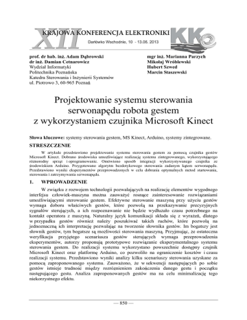 Projektowanie systemu sterowania serwonapędu robota gestem z