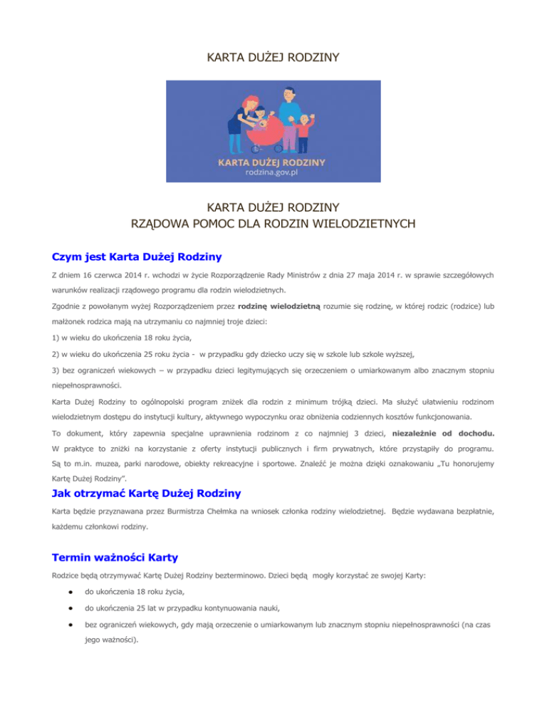 KARTA DUŻEJ RODZINY KARTA DUŻEJ RODZINY RZĄDOWA