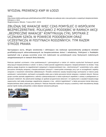 WYDZIAŁ PREWENCJI KWP W ŁODZI ZBLIŻAJĄ SIĘ WAKACJE