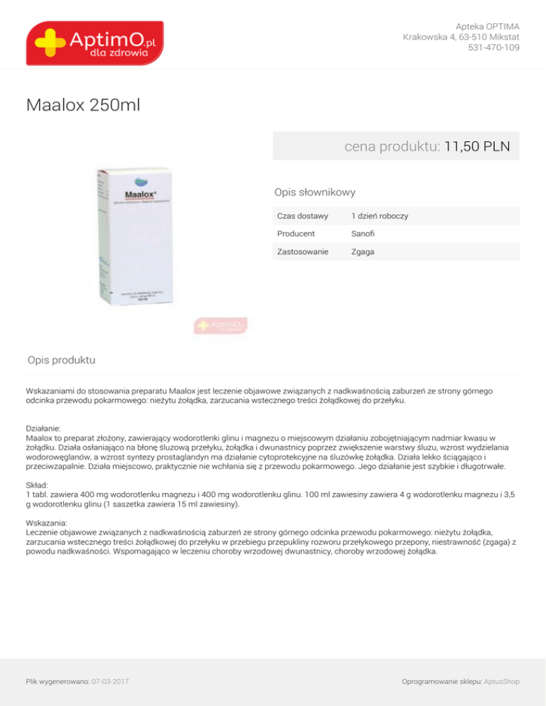 Maalox 250ml - AptimO.pl Dla zdrowia..