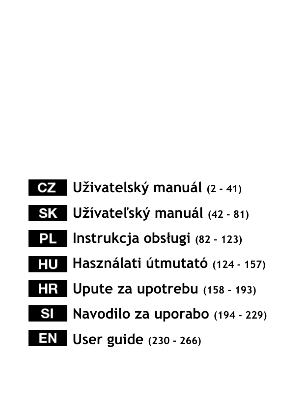 Uživatelský manuál (2 - 41) Užívateľský manuál (42 - 81) Instrukcja obsługi (82 - 123) Használati útmutató Upute za upotrebu (158 - 193) Navodilo za uporabo User guide (230 - 266) (124 - 157) (194 - 229) Ego Mobilní telefon pro seniory se vzdálenou správou: SMS RemoteTrack Uživatelský manuál Děkujeme vám za zakoupení Mobilního telefonu EVOLVE Ego. 1. Přepnutí jazyku v telefonu EVOLVE Ego: - Zapněte telefon - Zvolte Menu stiskem tlačítka "OK" - Zvolte možnost 2 (Nastavení) a stiskněte "OK" - Zvolte možnost 4 (Nastavení telefonu) a stiskněte "OK" - Zvolte možnost 1 (Jazyk) a stiskněte "OK" - Šipkou nahoru/dolů vyberte Jazyk telefonu a stiskněte "OK" 2. Bezpečnostní instrukce Prosíme přečtěte si tato jednoduchá pravidla. Jejich nedodržení může být nebezpečné nebo nezákonné. Bezpečné řízení - Netelefonujte během řízení. Pro telefonování během řízení motorového vozidla používejte handsfree sadu. Telefon vždy bezpečně uložte do držáku. Nepokládejte jej na sedadla spolucestujících nebo na jiná nezajištěná místa, odkud může v případě nehody nebo prudkého brzdění setrvačností odletět a způsobit zranění nebo poškození majetku. Během letu telefon vypněte - Přístroje letadla mohou být ovlivněny zapnutým mobilem. Používat telefon v letadle je obvykle nezákonné. Během letu telefon vypněte. Vypněte telefon v oblasti, kde probíhají odstřely Postupujte striktně podle platných zákonů a bezpečnostních doporučení a nepoužívejte telefon v místech, kde probíhají odstřely budov nebo těžba v lomech spojená s odstřely. 3 Pokud se vyskytujete v místě s nebezpečnými látkami, telefon vypněte - Vpínejte telefon před vjezdem do areálu benzínové čerpací stanice nebo blízkosti úložišť paliva, chemikálií nebo explozivních látek. Nemocnice - Dodržujte pravidla stanovená pro nemocnice, pokud tam telefon musíte použít. Vždy jej mějte vypnutý, pokud jste v blízkosti lékařských přístrojů. Mohlo by dojít k interferencím a tím ke zkreslení přesnosti výsledků. Případné dotazy na toto téma konzultujte s lékařem nebo výrobcem příslušného lékařského přístroje. Interference - Činnost každého telefonu může být ovlivněna interferencemi. Odborný servis - Telefon by měl být zprovozněn a opravován pouze školenými odborníky. Pokud budete do telefonu zasahovat sami, můžete jej poškodit a přijít o záruku. Příslušenství a baterie - Používejte pouze příslušenství a baterie schválené výrobcem. Správné používání - Používejte telefon podle návodu. Nedotýkejte se zbytečně oblasti antény, pokud je telefon zapnutý. Nouzové hovory - Pokud je telefon zapnutý a připojený do GSM sítě, můžete uskutečnit nouzový hovor na některé z národních čísel záchranného systému (např. 112, atd.). Po vytočení čísla oznamte svou polohu a stručně vysvětlete, co se stalo. Bez souhlasu telefonního operátora hovor neukončujte. 4 Poznámka: Některé funkce tohoto telefonu nemusí být podporovány ve všech GSM sítích. Některé sítě například nepodporují volání na nouzové číslo 112. Rovněž může být problém uskutečnit nouzový hovor, pokud není dostatečné pokrytí telefonní sítí. Proto se nespoléhejte pro kritické situace pouze na tento telefon, obzvlášť pokud očekáváte nutnost přivolání lékařské pomoci za všech okolností. Raději nejprve ověřte funkčnost služeb a dostupnost signálu u správce své GSM sítě. 3. Specifikace a tlačítka - Typ sítě: GSM 850MHz/DCS1900MHz Dual Band - Výdrž baterie při hovoru: cca 2-3 hodiny dle místních podmínek - Pohotovostní stav: cca 200-300 hodin (dle GSM sítě) - Kapacita baterie: 800 mAh 3.1 Vzhled 5 1 Svítilna 2 Reproduktor 3 Displej 4 Boční šipka nahoru 5 Boční šipka dolů 6 Šipka nahoru 7 Vytočení hovoru 8 Ukončení hovoru 9 Šipka dolů 10 Tlačítko FM rádia 11 Číselná tlačítka 12 Mikrofon 13 Rozhraní pro nabíjení a sluchátka 14 Kryt baterie 15 Tlačítko SOS 16 Tlačítko zapnutí a vypnutí svítilny 17 Tlačítko uzamčení a odemčení 3. 2 Tlačítka a spínače Tento telefon je vybaven následujícími tlačítky a spínači: Číslo Název 1 2 Popis Vytočení hovoru Vytočí hovor nebo přijme příchozí hovor. Pokud je telefon v pohotovostním režimu, slouží k procházení historie hovorů. Používá se jako potvrzovací tlačítko. Ukončení hovoru Ukončí probíhající hovor. Dlouhým stiskem tlačítka telefon vypnete. Při pohybu v různých menu se krátkým stiskem vrátíte do pohotovostního režimu. 6 3 Používá se k posouvání položek v hlavním menu nebo v telefonním seznamu. Tlačítko V režimu editace posunuje kurzor. nahoru/dolů V pohotovostním režimu se stiskem tlačítka Nahoru dostanete do hlavního menu. Používá se k zadávání čísel, písmen a znaků. Pro změnu způsobu zadávání stiskněte v editačním režimu znak #; stiskem * se přepnete do nabídky symbolů. Připojte sluchátka a stiskněte dlouze tlačítko “0”, čímž aktivujete funkci audiphone. 4 Klávesnice 5 Spínač svítilny 6 Zámek 7 SOS tlačítko Vytočí SOS číslo. 8 Tlačítko FM 9 Boční tlačítka Nastavení hlasitosti. nahoru/dolů Posunem nahoru nebo dolů zapínáte nebo vypínáte svítilnu při zapnutém i vypnutém mobilu. Posunem nahoru nebo dolů zamykáte nebo odemykáte klávesnici telefonu. Přímá aktivace FM rádia. 3. 3 Stavové ikony 7 | | | | | | | | | | | |___________ Stav baterie | | | | |_______________ Přesměrování hovoru | | | |___________________ Alarm je aktivní | | |_______________________ Roaming | |___________________________ Sluchátka |_______________________________ Síla signálu Stav vyzvánění: --- ztišeno ----- Vibrace 3.4 Podsvícení LCD Délka podsvícení displeje a klávesnice může být nastavena v me